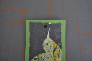 Before you cover your bookmark with contact paper, punch a hole 1/2" from the top. Also, I stamped the back of my bookmark with a personalized stamp. If you are giving your bookmark away, this is a sweet way to personalize it for a friend.